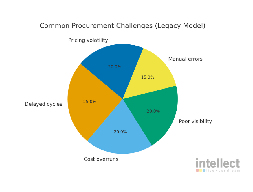 Traditional procurement processes rely on fragmented systems, manual inputs, and siloed data. This leads to measurable inefficiencies: